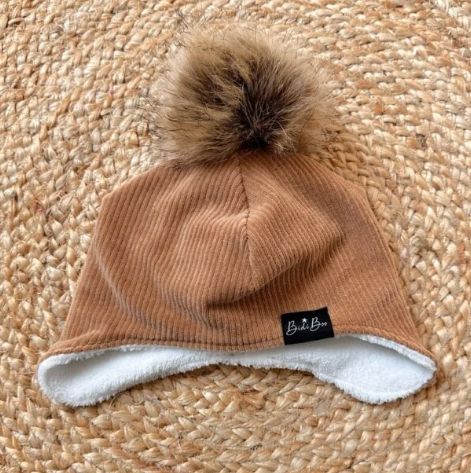 Bonnet chullo pompon rib camel