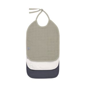 Bavoirs mousseline médium à nouer (3 pcs), olive blanc cassé bleu marine